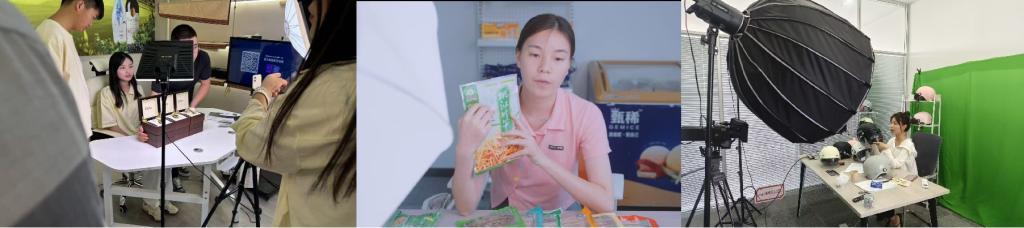 基地总占地1700平米,建有8个生产运营直播间,2个专业技能培训室、1个校企双导师工作室、1个会议室、1个接待室。