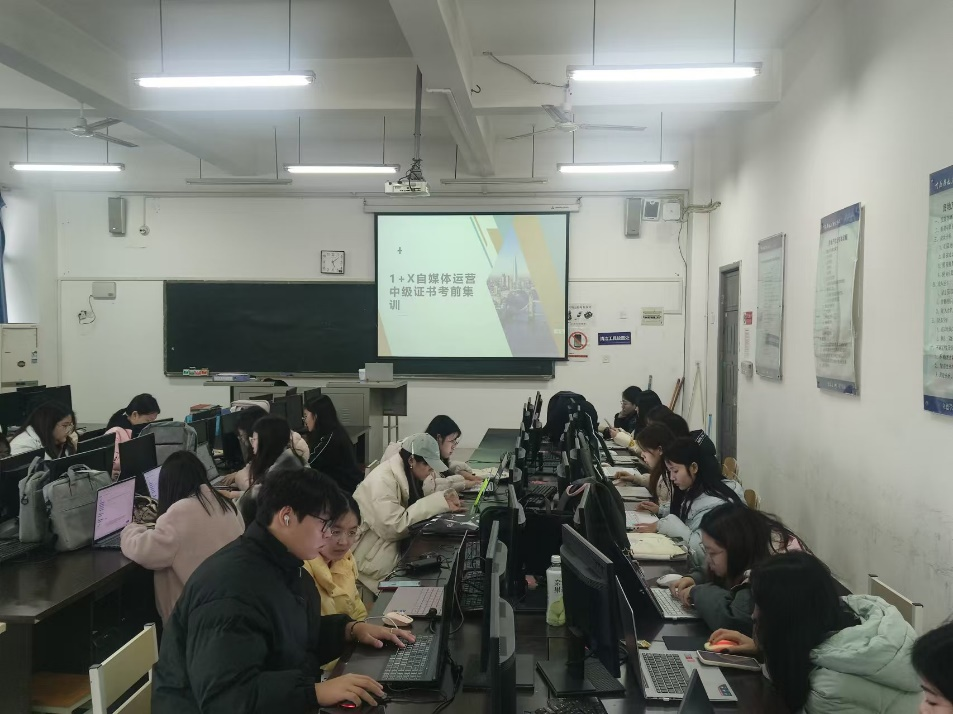 经过严格的选拔考试,成绩排名前50名的学生获得了参加1+X自媒体运营中级考试的资格。随后,我们对这50名学员进行了考前集中培训,进一步强化他们的专业知识和应试能力。