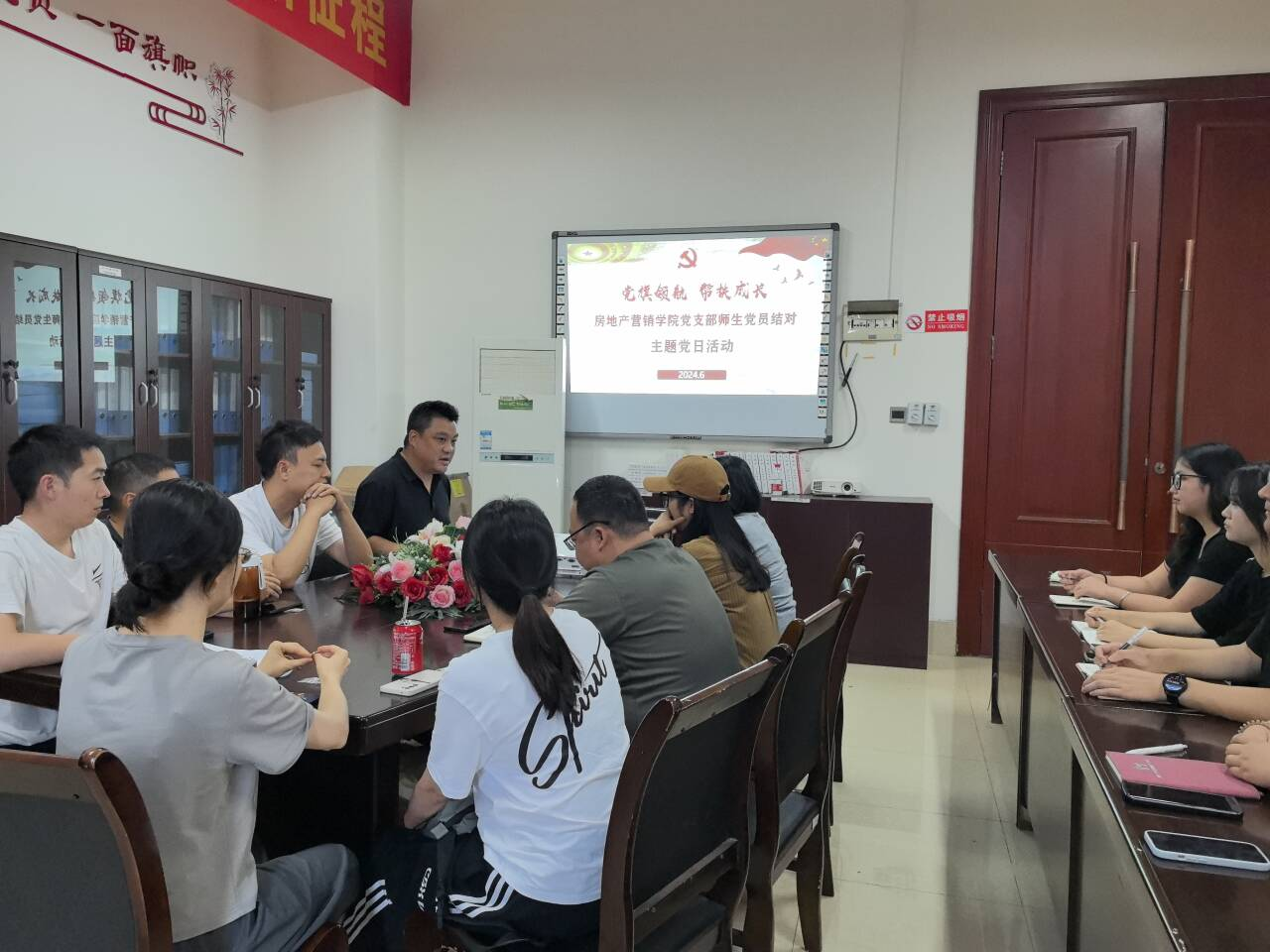 为深入贯彻习近平新时代中国特色社会主义思想,围绕立德树人根本任务,充分发挥党支部的战斗堡垒作用和党员的先锋模范作用,强化思想政治引领,筑牢理想信念根基,切实关心促进学生党员健康成长,保障学生入党后的持续性教育,解决学生党员的实际困难,2024年6月28日,房地产营销学院党支部积极响应党的号召,深入贯彻党的教育方针,决定开展一项具有创新性和实效性的主题党日活动——教师党员与学生党员结对。