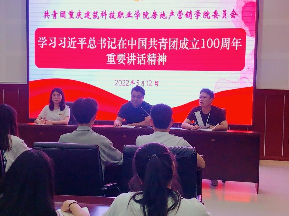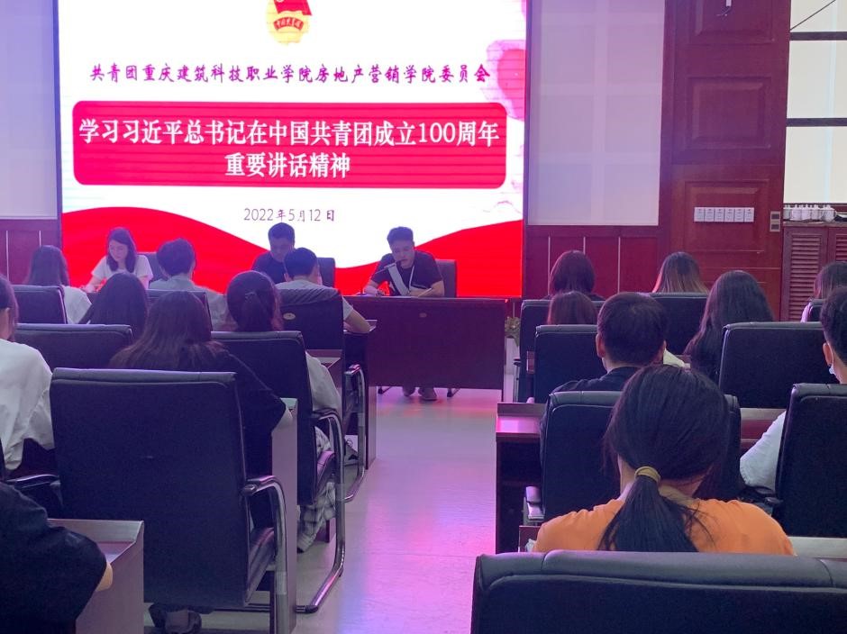 为继续贯彻落实学习习近平总书记在中国共青团成立100周年重要讲话精神,房地产营销学院团总支于5月12日17:00在笃学楼4305会议室组织专题学习。学院党支部书记孙小川、学院团总支书记彭家正、学院团总支副书记(学生)白治菲、学院学生会主要干部及各班团支部书记参加本次学习。