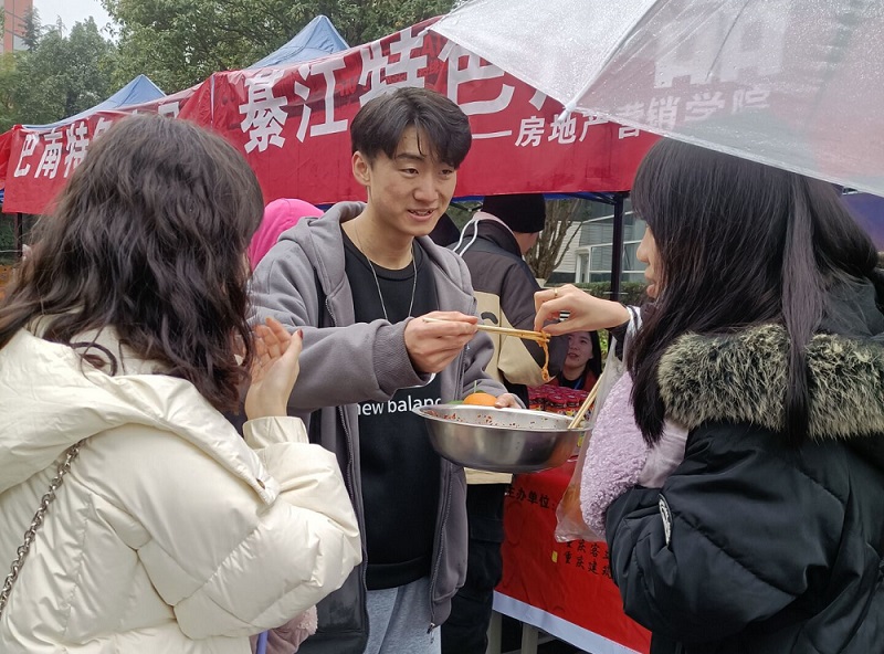 其中,区县特色扶贫产品区是现场销售热度最活跃的区域。为切实通过消费为扶贫助力,房地产营销学院发动全院师生,通过线上线下的方式,联络多个区县,为他们解决当地特色农产品滞销的问题。奉节的脐橙、忠县的血橙、綦江赶水的萝卜干和风味豆腐乳、荣昌的花生酥、巴南木洞的蜜枣、巫溪的腊味……全部都来到了活动现场。同学们在试吃之后,都纷纷竖起了大拇指,当然也忍不住“剁手”,好几种产品都已脱销。