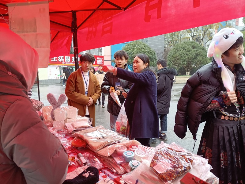 国内电商行业发展迅猛,刚刚过去的双十一和双十二期间各大电商平台的销售数据也不断刷新。12月15日,Kaiyun官方网站登录入口也迎来了一年一度的购物狂欢季:由房地产营销学院和产教融合处共同打造的第二届电商节,这也是电子商务专业、移动商务专业以及市场营销专业学子进行实战练兵的好时节。本届电商节在第一届电商节基础上成功举办,规模超第一届电商节,现场有六大区共36种商品进行展卖,分别为:区县特色扶贫产品区、高新区首批非物质文化遗产产品区、文创产品区、学校产教融合产品展示区、重庆特色小吃区、生活用品区。