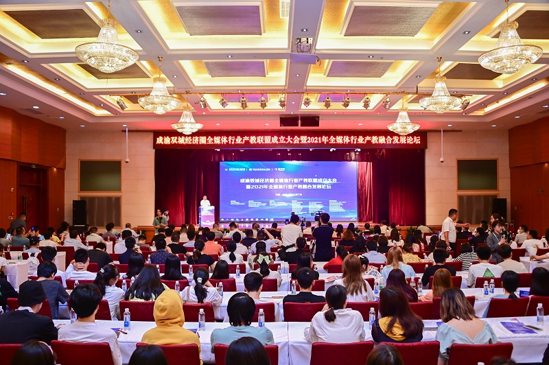 会上,高校学者、行业专家、企业代表分别围绕“智能金融与智慧经济时代成渝经济圈全媒体崛起”“产教融合在高校的新型发展模式”“搭建桥梁,融通四链,深化全媒体产教融合”“自媒体行业发展”“全媒体行业金融发展趋势”进行了主题分享。