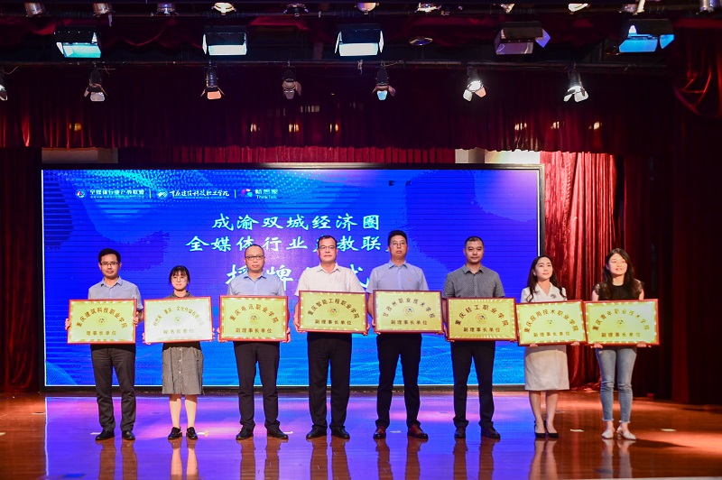 会上,先后进行了“成渝双城经济圈全媒体行业联盟”揭牌仪式和多项产教融合项目签约仪式。
