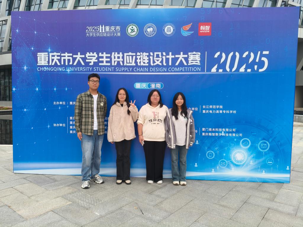 忙碌的10月,收获的10月,物流工程技术专业师生在10月分别参加了重庆市教委举办的重庆市大学生供应链设计大赛和重庆市第二届大学生数字经济创新应用大赛,两个赛项于2025年10月18日和10月19日分别在重庆潼南区和重庆永川区举行线下决赛,最终荣获供应链设计大赛二等奖1项,三等奖1项,荣获数字经济创新应用大赛二等奖2项。
