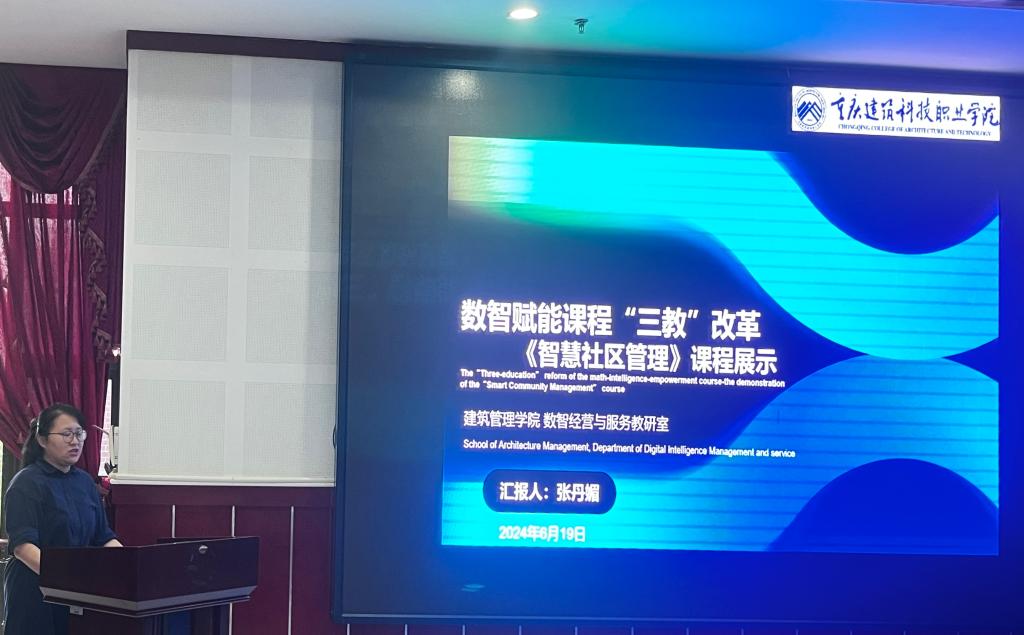 随后,各专业推荐“讲金课”的教师进行展示活动,张丹媚老师交流的课程名称是《数智赋能课程“三教”改革—智慧社区管理》,在家国情怀、职业理想、工匠精神的思政引领下掌握智慧社区体系架构、建设规划、智慧物业管理、智能家居与电子商务管理、智慧养老与医疗管理、智慧社群管理主要内容和应用;