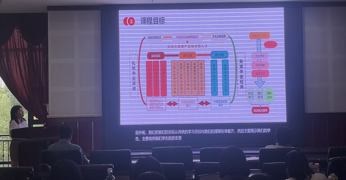 张璐老师重构以《中医养身保健》课程展示内容,从2021年开设以来,重构课程框架、优化课程内容、合理布局理论教学与实践教学,达成理论与教学课时1:1,学中做,做中学。经过一年多的课程建设,开设校级文化选修课程,目前已有1000名学生选修;除此之外,革新考核方式,从饮食养生、起居养身、方剂养身、经络推拿四方面进行考核,体验多样化的实践考评模式。
