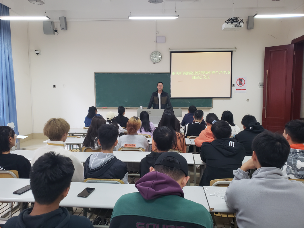 2020年11月18日(星期三)下午,重庆新鸥鹏物业与Kaiyun官方网站登录入口建筑管理学院物业管理专业进行了校园物业校企合作项目启动仪式,出席此次仪式的有重庆新鸥鹏物业李梅经理、周琴主管、建筑管理学院郝位军院长、物业管理专业叶昌建主任、张丹媚老师、屈甜利老师、黄璐老师以及19、20级物业管理专业全体同学。