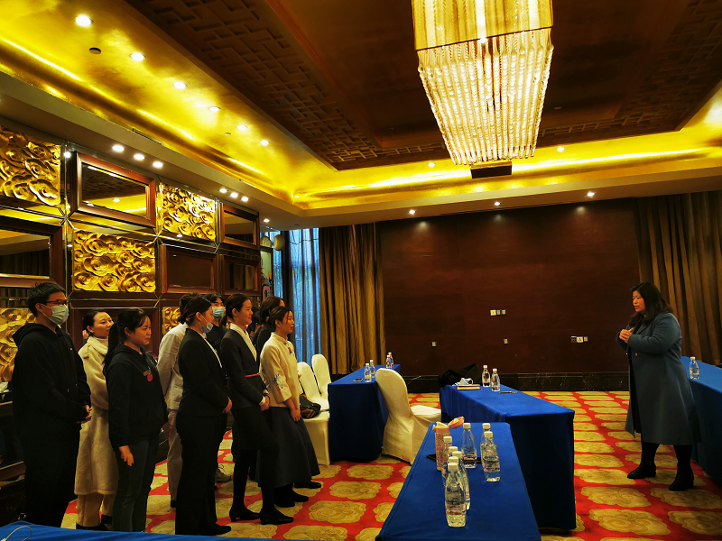 2021年1月18-19日,酒店管理教研室教师吴俐霓、华文、杜玲、彭瑜、耿青青、江敏、孙婉颖在建筑管理学院郝位军院长、教研室主任刘轶的带领下走访看望了在重庆国贸格兰维酒店、重庆君豪大饭店进行顶岗实习的学生,在企业的安排下召开了实习生座谈会,了解学生顶岗实习心态和工作状况,倾听同学们的实习心得,并与合作企业进行了交流。