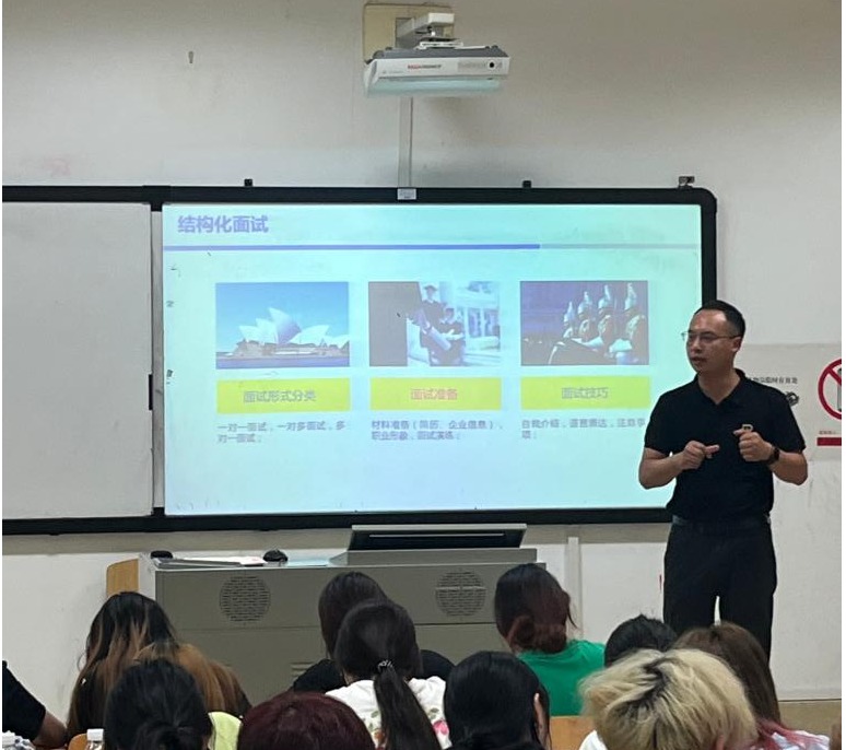 讲座内容涵盖了简历制作、面试技巧、职业规划等多个方面。杨先生强调,一份出色的简历是求职成功的关键,简历应凸显个人特色、核心能力和过往经历,同时需保持简洁明了、突出重点。他还分享了结构化面试、无领导小组讨论等常见面试形式的应对策略,并鼓励同学们在求职过程中保持自信,积极展现自身的专业素养和综合素质。