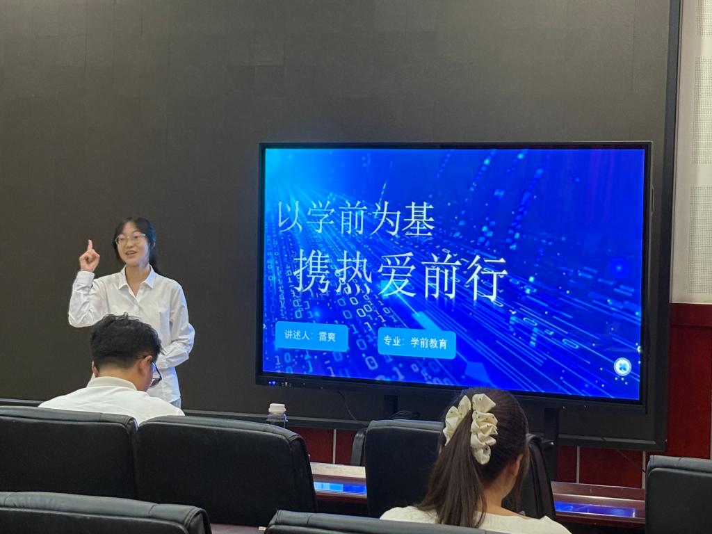 成长赛道选手多结合自身专业知识与技能,制定清晰的学业规划与职业发展路径。如学前教育专业的雷爽同学以“以学前为基,携热爱前行”为主题,分享自己在专业学习中的成长与感悟,展现出对学前教育事业的热爱与执着。