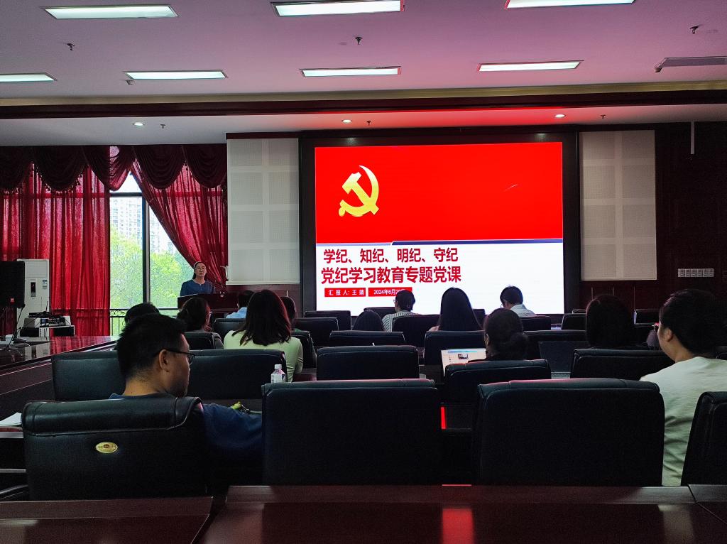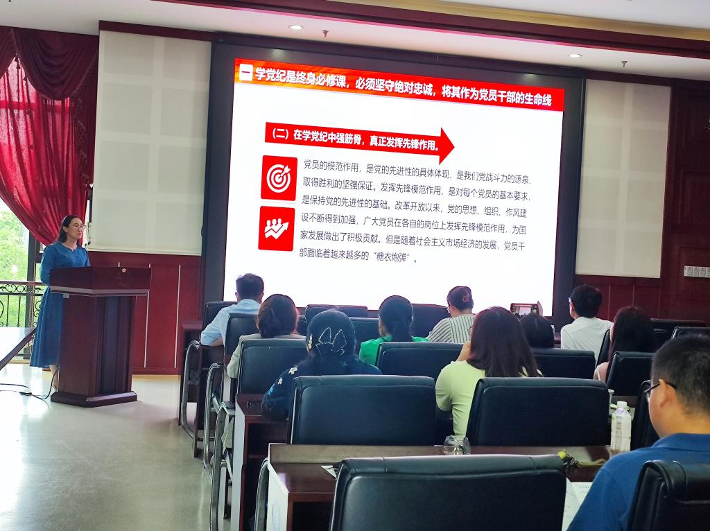 强理论,增党纪,为了提升党员教师的党性纪律修养,2024年6月28日建筑管理学院邀请王靖校长助理在4305会议室为建筑管理学院教师党支部的全体党员教师开展了“学纪 知纪 明纪 守纪”党纪学习教育专题党课。
