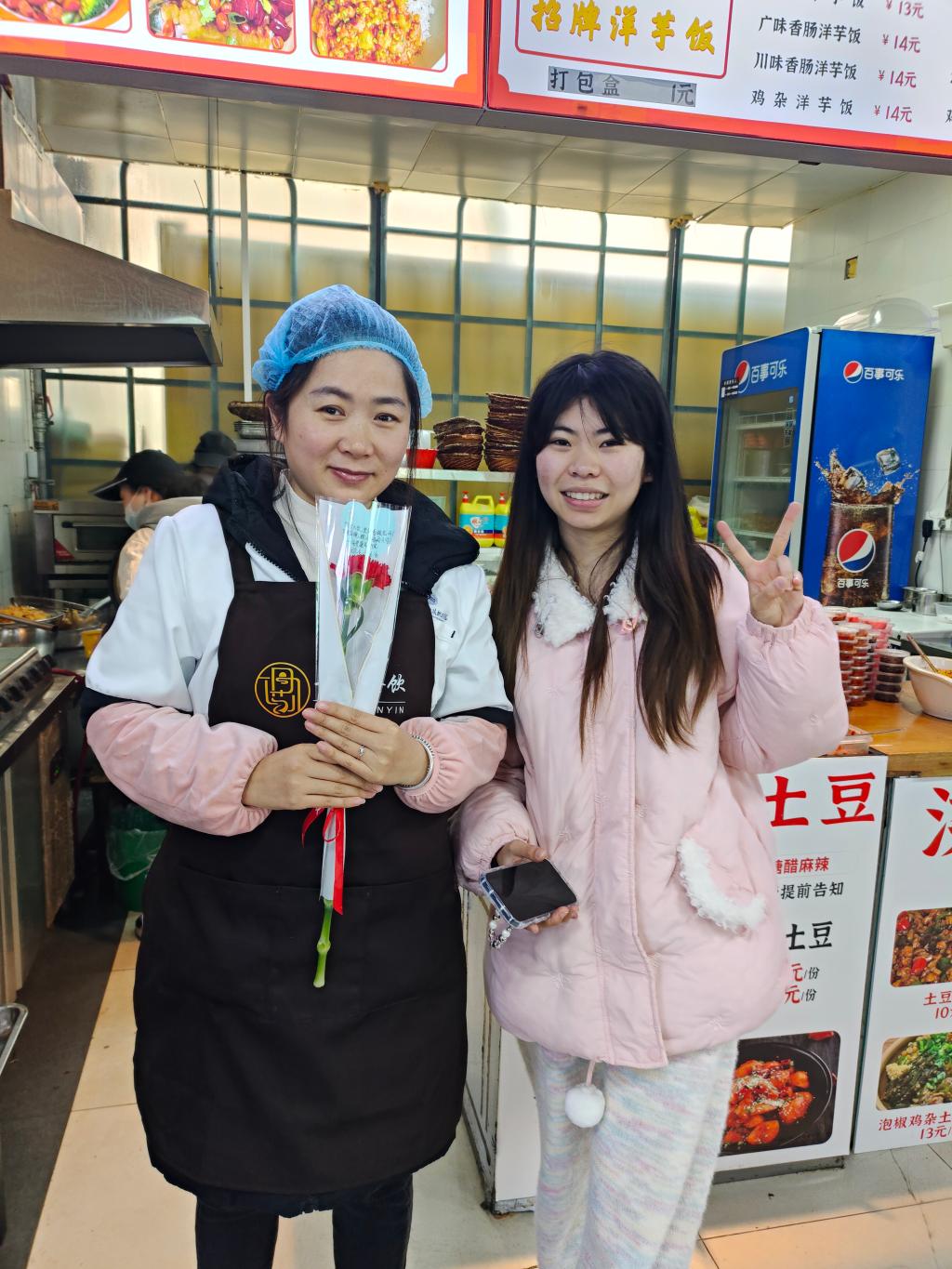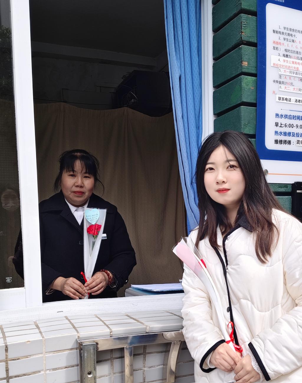 今日的校园格外的鲜艳美丽,各个角落,食堂、宿舍,校园里偶遇的园丁……大家手捧鲜花,脸上洋溢着喜悦与感动,幸福的笑容如同绽放的花朵般绚烂。在送祝福过程中,师生们亲切交流,一时之间,校园里充满了欢声笑语和温暖的气息。