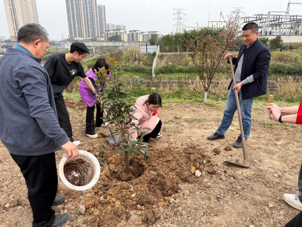 活动当日,师生党员抵达植树现场,在社区工作人员简单讲解注意事项后,大家迅速行动起来。师生党员充分发挥先锋模范作用,带头领取树苗、工具,挖坑、栽种、培土、浇水,每一个环节都认真细致。师生与社区居民紧密配合,三人一组、五人一队,干劲十足。有的挥锹铲土,有的扶苗填坑,有的提桶浇水,现场呈现出一片热火朝天的劳动景象,大家积极投入,用实际行动践行绿色环保理念。