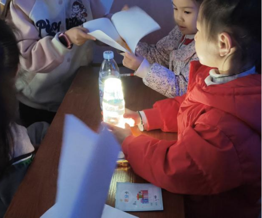 活动开始前,志愿者们提前准备好了维生素B2、彩色粉笔、瓶子等材料。来自智慧康养学院婴幼儿托育专业的朱煜小姐姐为小朋友们讲解了水中流星雨科学小实验。孩子们兴致勃勃,踊跃举手回答关于流星雨的问题,纷纷分享自己所了解的相关知识。在动手操作环节,小朋友们在志愿者们指导下,按照实验步骤,先用维生素B2制作出黄色流星雨,随后又利用彩色粉笔调配出自己喜欢的流星雨色彩。家长们也一同参与,共同见证实验过程,现场气氛温馨融洽。