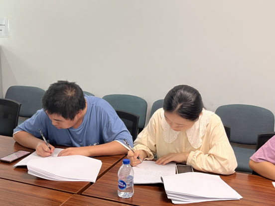 培训之后进行岗位实习会议。参加本会议的人员有金融街物业人力资源部张雪老师,柴兰老师,我院张丹媚老师和四位同学们。首先企业老师代表企业欢迎同学们的到来,以及对于6个月的岗位实习安排进行详细的说明,其次张老师作为校方感谢企业方对于此次岗位实习的支持,感谢同学们对于企业的信任和岗位实习的积极参与,与同学们交换了岗位实习的意见等。之后同学们与企业签订了实习协议,对岗位实习表自己的决心,保证能够很好地积极参与岗位实习的岗位任务并能顺利完成。最后参加会议的在场人员一起合影留念。