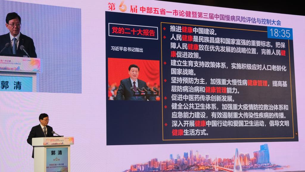 本次会议将以“创新驱动发展,中部特色融合”为主题,邀请国内知名专 家学者紧紧围绕健康管理学术前沿和中部地区特点,聚焦健康管理新需求、新 模式、新方法进行广泛交流。参加此次讲座的有陆军军医大学第一附属医院院长张云福院长;中华医学会健康管理学分会主任委员郭清主任;全军健康管理专业委员主任委员曾强主任;重庆市医学会副会长兼秘书长周红副会长;重庆市科学技术协会科技社团党委专职副书记高军副书记;中国健康促进基金会创会理事长、中华医学会健康管理学分会终身荣誉主任委员白书忠主任等。