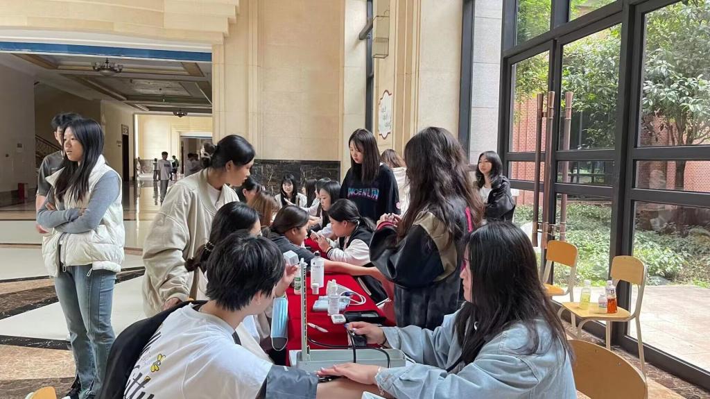 2023年5月17日,22级健康管理专业由原冰老师带领我们在笃学楼一楼大厅举行“爱心健康义诊”职教周活动。义诊,顾名思义就是免费为大家检查身体,义诊是奉献爱心的表现,在社区、学校为常见。