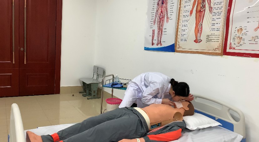 实际操作环节分为心肺复苏、老人轮椅转移外出、测量血压三个项目进行。每个项目都有严格的评分标准,要求各选手们在规定的时间内完成操作,并保证操作的准确性和安全性。