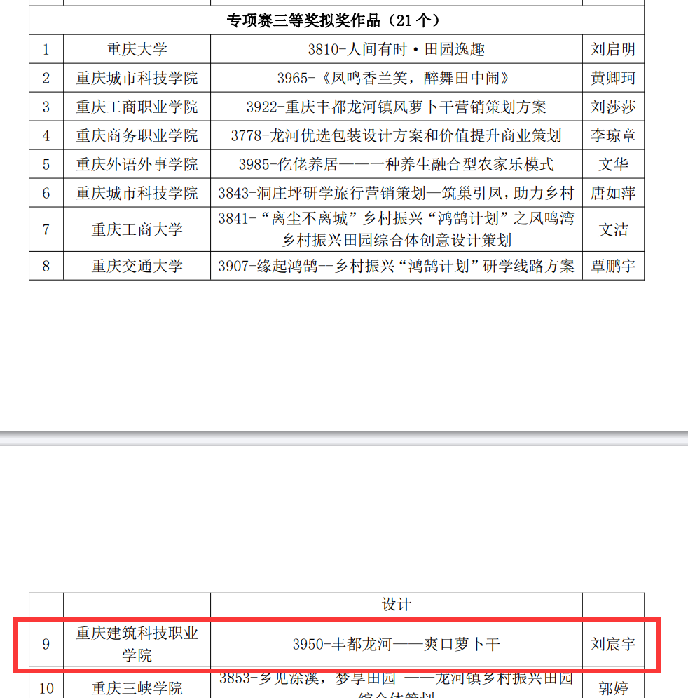 喜报:建筑管理学院学子在第三届重庆市大学生乡村振兴创意大赛市级复赛中荣获三等奖