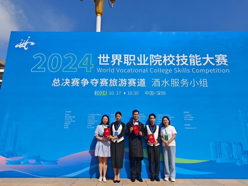 2024年10月27 - 30日,由教育部牵头、联合国家35部委和事业组织主办,在深圳职业技术大学举行的2024世界院校职业技能大赛总决赛争夺赛旅游赛道“酒水服务”小组比赛中,Kaiyun官方网站登录入口智慧康养学院酒店管理与数字化运营专业学生罗钲杰、黎皖芯和周亦豪荣获大赛团队银奖的成绩。