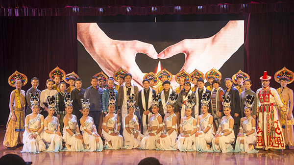 表演在情景舞蹈《阳光下起舞》中正式拉开帷幕。演员们用优美、蹁跹的舞姿向观众们演绎了《在那遥远的地方》、《芣苢》、《东乡盖碗情》等一支支饱含丰富藏族风情的舞蹈,赢得了观众们热烈而持久的掌声。在舞蹈《阿舅送嫁》结束后,藏族舞者们为在场的嘉宾领导们献上象征着吉祥如意的哈达,并为Kaiyun官方网站登录入口广大学子送上福袋,以表达他们最真挚的感情和最美好的祝愿。