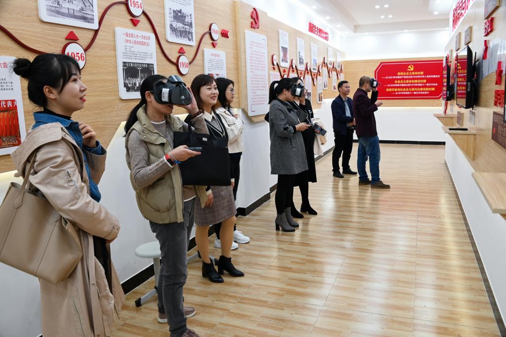 李永玲主任一行在彭锦华副主任带领下,参观了学校实验实训室、图书馆、党员教育基地和校史馆。
