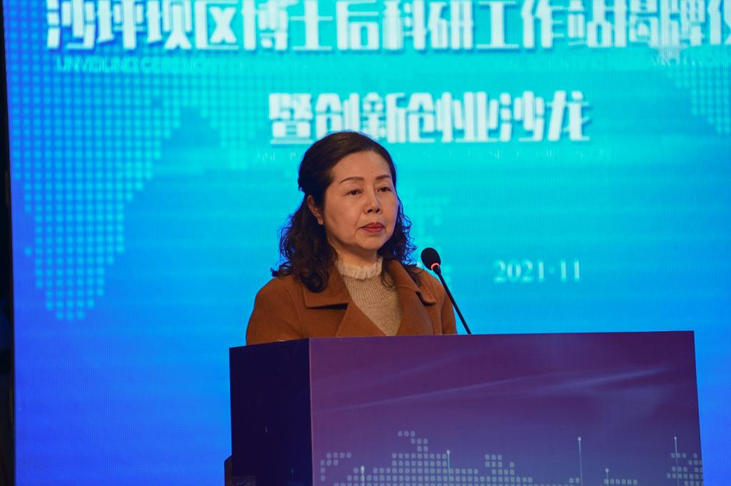 仪式上,沙坪坝区人民政府副区长周红玲代表沙坪坝区向博士后科研工作站的成立和获聘导师表示热烈祝贺。周红玲副区长指出,创新创业是国家赢得未来的基础和关键,需要有一批有丰富经验和创新视野的博士后导师的指导,近年来,沙坪坝区高度重视对博士后和创业者的培养,下一步沙坪坝区将深入贯彻落实中央和市委人才工作精神,下大力气培养引进用好人才为区域经发展提供坚强的人才保障。希望此次聘任的博士后导师积极助力解决创业难题,希望博士后和创业者身怀爱国之心主动担负起时代赋予的使命和责任,为区域发展作出更大的贡献。