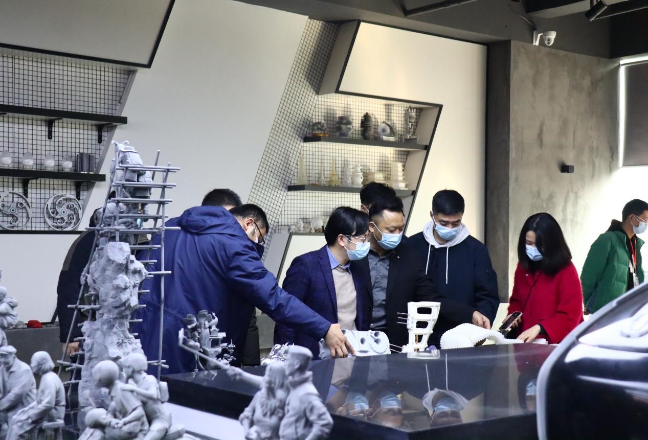 周俊华校长助理一行首先考察了重庆大千汇鼎园区内的3D打印基地、现代化模型制作车间,参观了工业设计产品展厅。接着双方召开座谈会就相关合作事宜进行交流。会上,双方决定共建生产性实践教学基地和校外实践教学基地,为双方进一步开展校企合作,探索校企协同育人奠定基础。