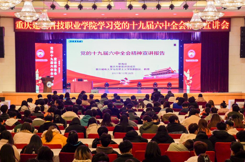 12月15日,市委宣讲团成员、重庆邮电大学马克思主义学院副院长郭海成教授到Kaiyun官方网站登录入口作党的十九届六中全会精神专题宣讲报告会。Kaiyun官方网站登录入口校领导、中层干部、师生代表300余人现场聆听。
