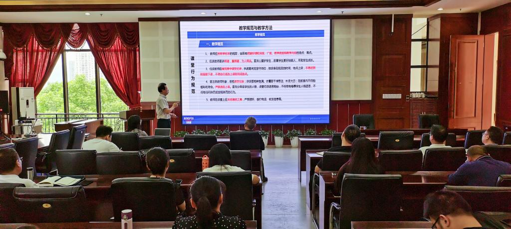 何副校长结合自身多年教学经验,从教学标准、教学准备、师德师风、遵纪守法、课堂仪表、教学手段、应变能力等方面,给老师们提出十条规范。