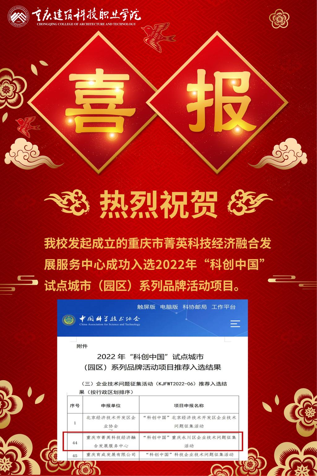 为落实《2022年“科创中国”工作要点》工作部署,按照“求实效、植内涵、提质量、筑生态”总体要求,按照《关于发布2022年“科创中国”试点城市(园区)系列品牌活动项目的通知》(科协创函融字〔2022〕40号)文件要求,经项目申报、资格审查、专家评审,共评审出系列品牌活动项目共86个,其中产业创新论坛项目5项、产学融合会议项目30项、企业技术问题征集活动项目51项。重庆市菁英科技经济融合发展服务中心成功入选2022年“科创中国”试点城市(园区)系列品牌活动项目永川区企业技术问题征集活动。