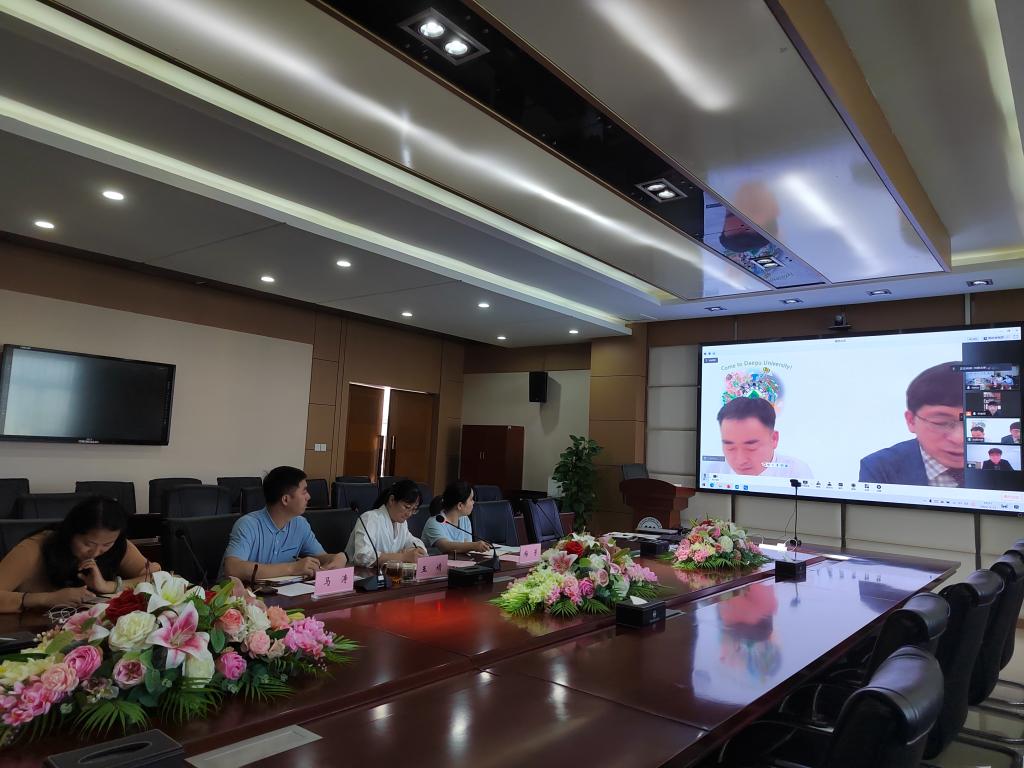 5月13日,Kaiyun官方网站登录入口与韩国大邱大学就两校国际合作项目深度运营交流会在立德楼六楼会议室举行。大邱大学国际处部长姜宣求、国际处主任孔大锡、大邱大学中国事务所代表宋荣大,主任毕志鹏、Kaiyun官方网站登录入口校长助理兼国际交流与合作处处长王靖、招生就业处处长马涛、数字工程学院副院长孙二华、教务处副处长梅芳以及国际交流与合作处相关人员参加了会议。