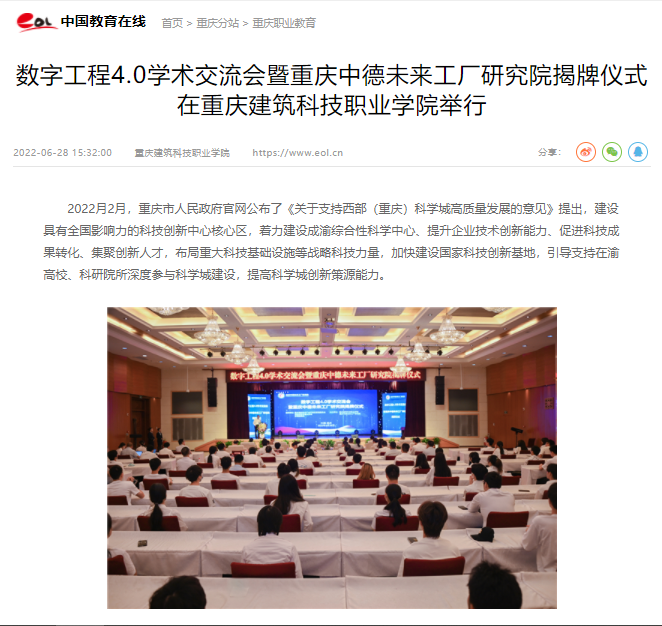 中国教育在线报道Kaiyun官方网站登录入口举行数字工程4.0学术交流会暨重庆中德未来工厂研究院揭牌仪式
