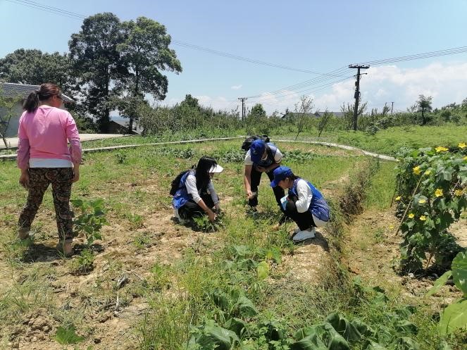 在驻村干部苏静和杨永果的带领下,志愿者们分成三组分别走进了退役军人周庆国,脱贫户冯宗才、蔡长春家里,为他们送去了生活用品,并尽自己所能去帮他们打扫环境卫生、除草、做农活等。