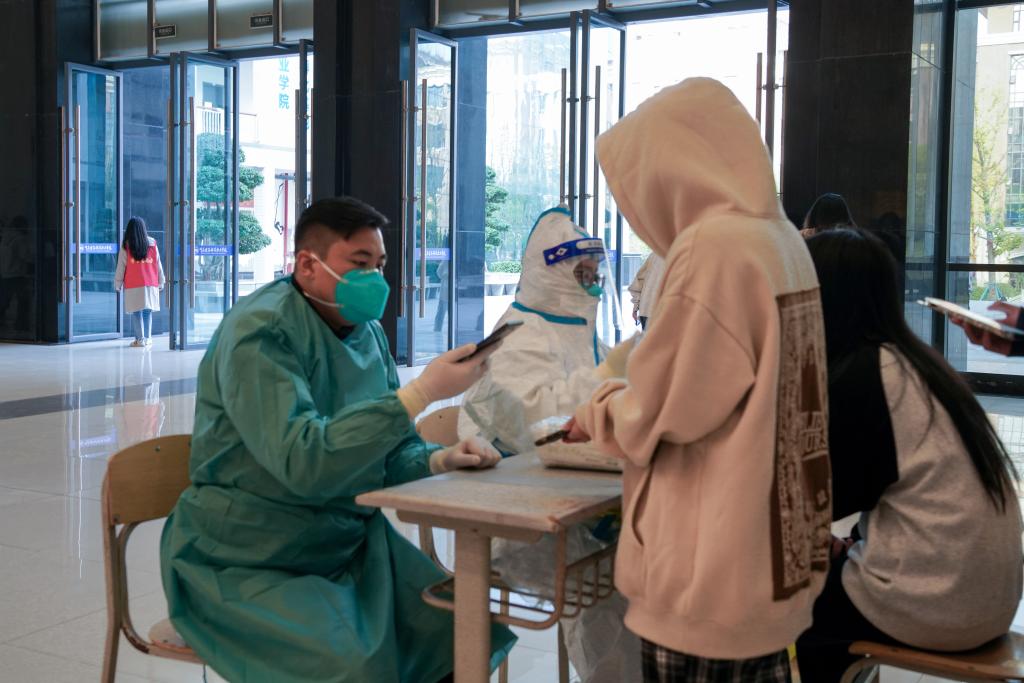 学生突发疾病急需校外就医,她们二话不说立即启动自己的车,烧自己的油,摇身变彪悍司机;政策规定学生志愿者不能参与核酸检测,她们摇身变“蓝衣天使“,生涩而干练地坐在核酸采样台扫码,发棉签。一有空闲,她们又来到学生寝室,敲响房门,督促调皮蛋“关闭游戏、不准外挂,专心收看主播老师的直播课。