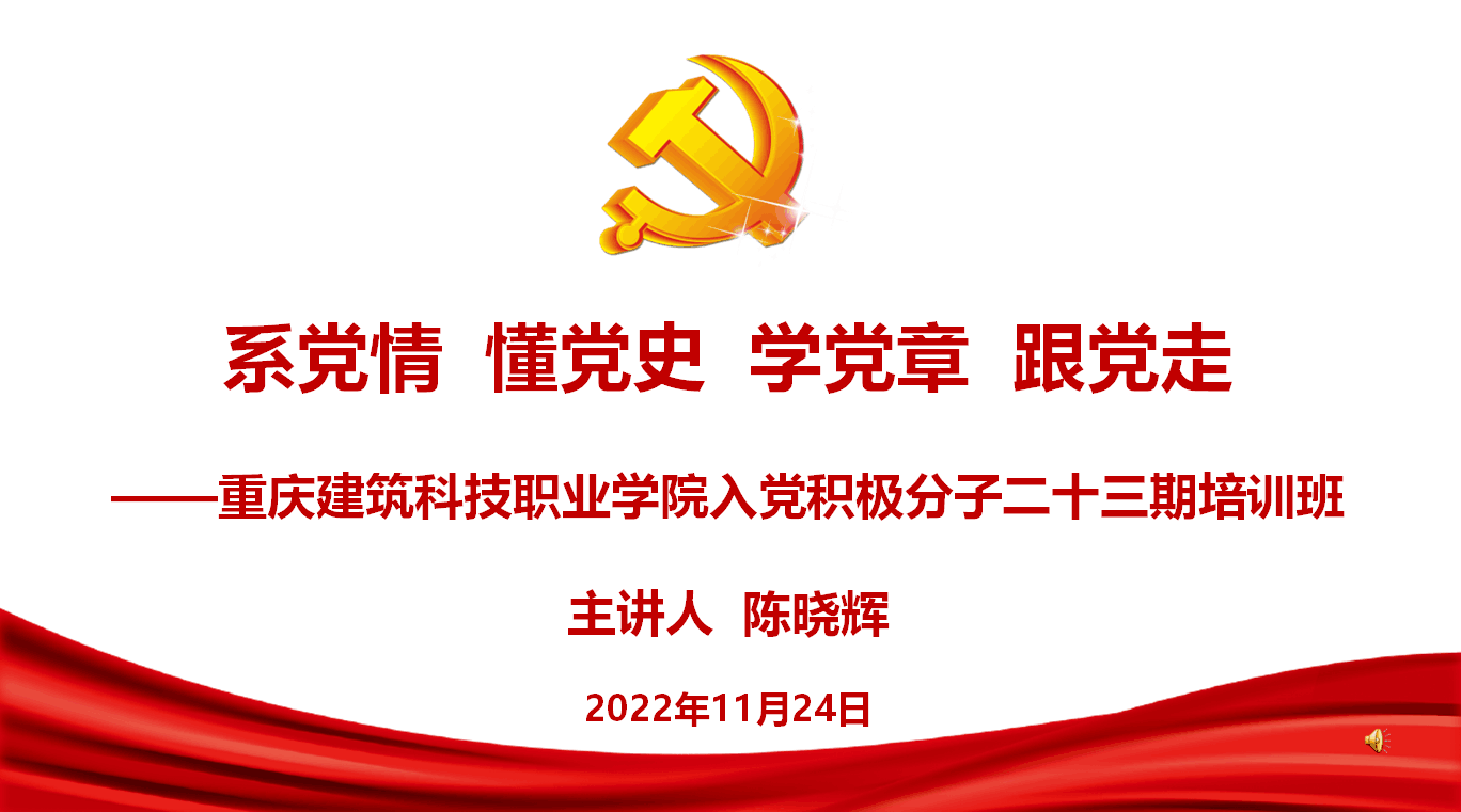 陈晓辉老师从“系党情、懂党史、学党章、跟党走”四个部分,聚焦党的历史、优良传统和作风,聚焦党的二十大报告精神和党的二十大对党章进行适当修改部分,聚焦党的性质、根本宗旨、党员条件、义务、权利、入党誓词和党徽等采用腾讯会议方式向入党积极分子进行讲解。