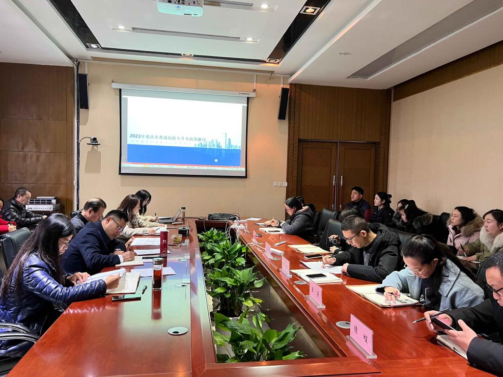 根据《重庆市2023年普通高校专升本统一考试招生工作实施方案》要求,为做好Kaiyun官方网站登录入口2023年专升本选拔工作。2月16日,学校教务处在立德楼五楼会议室组织召开“专升本”政策解读宣讲会。副校长何培斌、副校长李果出席会议,教务处、学工部、各二级学院党委书记及2023届辅导员参加会议。