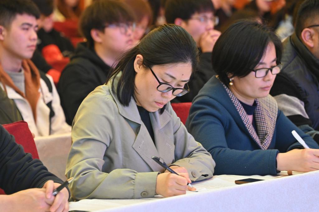 3月8日下午,学校校长刘东燕在学校学术报告厅以“深学细悟聚力量、实干担当展作为,学习贯彻党的二十大精神,全面推进中华民族伟大复兴”为题开展专题宣讲会,全体党支部书记、辅导员、入党积极分子、学生骨干代表近300人聆听。