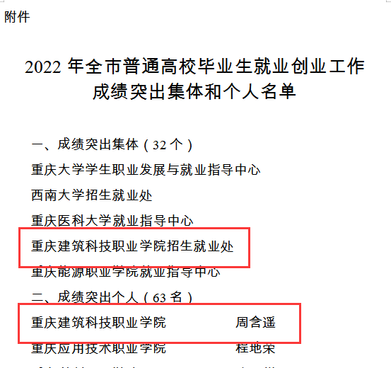 近日,重庆市教育委员会和重庆市人力资源和社会保障局发布了《关于2022年普通高校毕业生就业创业工作成绩突出集体和个人的表扬通报》,Kaiyun官方网站登录入口招生就业处荣获2022年全市普通高校毕业生就业创业工作成绩突出集体,招生就业处周含遥老师荣获成绩突出个人的荣誉称号。