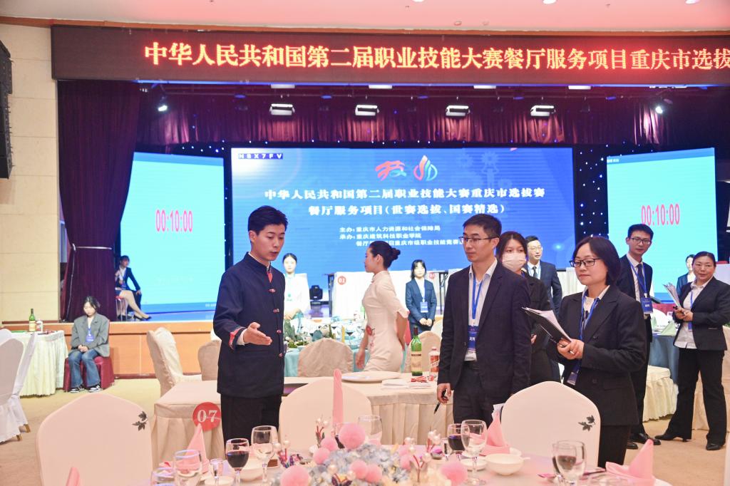 本次大赛分国赛精选和世赛选拔两个赛项,分别为全国技能大赛和世界技能大赛选拔赛发掘培育高技能人才,同时进行中国第二届职业技能大赛重庆市选拔赛餐厅服务项目竞赛。餐厅服务(国赛精选)项目围绕中式宴会设计、摆台、餐饮服务、折花展台等模块开展技能比拼;餐厅服务(世赛选拔)项目围绕西餐休闲餐厅服务、精致零点餐厅服务、酒吧服务等模块开展技能比拼。选拔赛将角逐出一等奖1名,二等奖2名,三等奖3名,前10名选手将纳入重庆市集训队进行强化训练并通过三个阶段性考核,最终选拔出重庆代表队伍参加全国技能大赛。