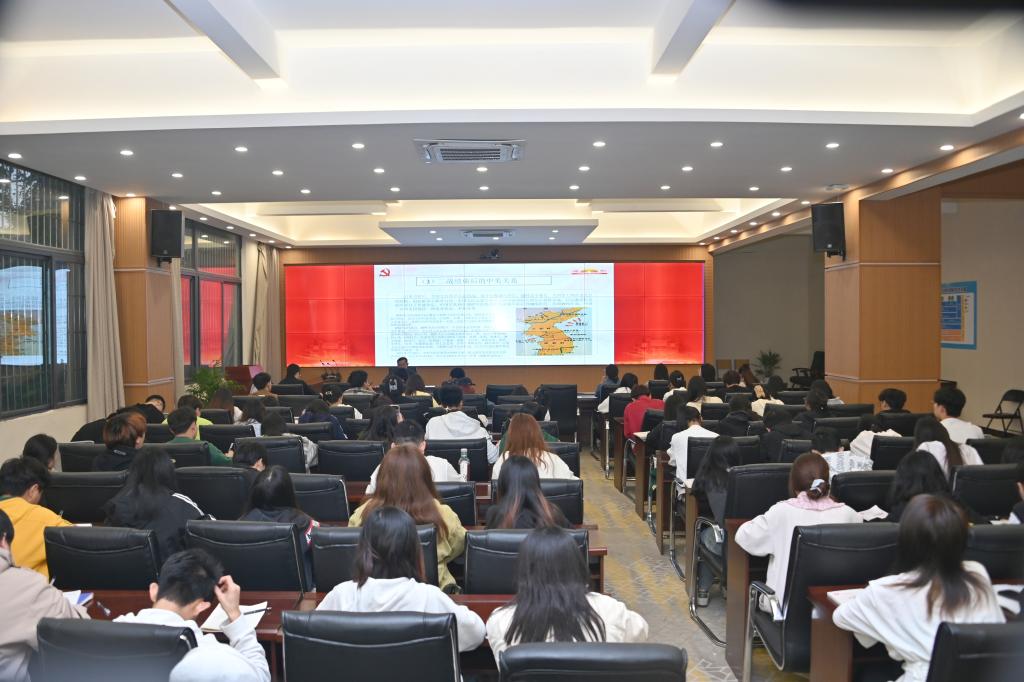 2023年10月30日,学校党委书记何光明教授在大数据会议中心为师生代表上了一堂《如何正确认识新时代的中美关系——从摩擦到贸易战的背后较量》思政课。