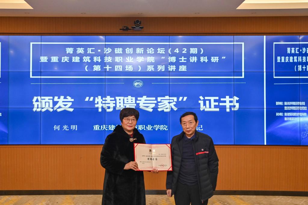活动开始,校长助理晏华致欢迎辞,党委书记何光明教授为骆永菊教授颁发“特聘专家”证书。