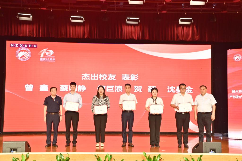 大会举行建校四十周年表彰仪式,学校刘东燕校长、何光明书记为杰出校友何巨浪、曾鑫、沈晏金、蔡明静、贺藐颁发了荣誉证书。罗春坪书记、文厚润理事长为光荣在校20年教职工代表汪杰、周福亮、殷源、冯兰、孙小川、彭汝伦颁发了荣誉证书。