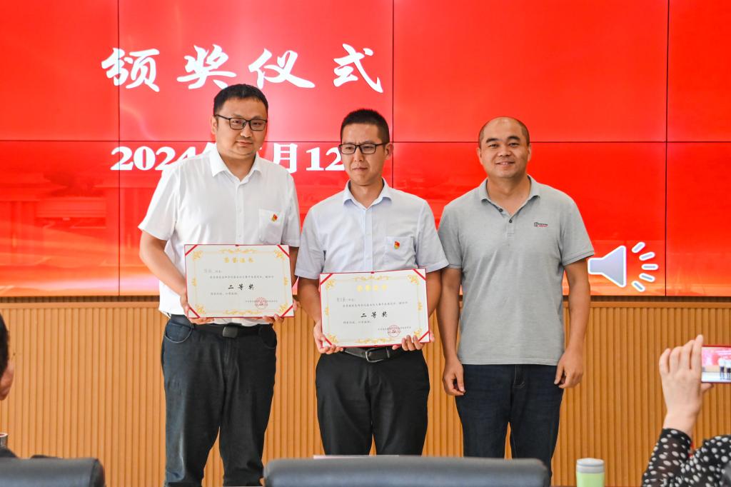 二等奖获得者建筑工程学院党总支书记陈程、数字工程学院党支部书记张运来