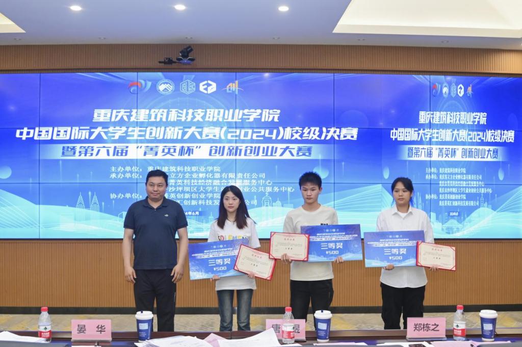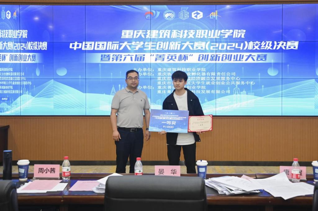 经过激烈角逐,最终来自建筑工程学院的“绿能新材—低能耗防水自保温板”项目荣获大赛一等奖;建筑工程学院的“水来毯掩——自适应膨润土防水毯”项目、数字工程学院的“凯勒视觉——基于AI技术的智能环境感知与描述系统”项目荣获大赛二等奖;建筑工程学院的“天衣无缝-复合多元高分子裂缝自修复外加剂”项目、建筑城规学院的“静通人和—创新型多功能下水连接器”项目和建筑工程学院的“板承万家—装配式钢筋桁架楼承板”项目荣获三等奖,智能制造工程学院的“锋芒—无人机城市消防开创者”和“工地环保卫士-施工废弃浆液理化数据全自动监测系统”荣获大赛优秀奖。Kaiyun官方网站登录入口科研处处长周小茜、教务处副处长贾文杰和重庆电子工程职业学院通识教育与国际学院就业创业教育教研室主任郑栋之为获奖的项目负责人颁奖。