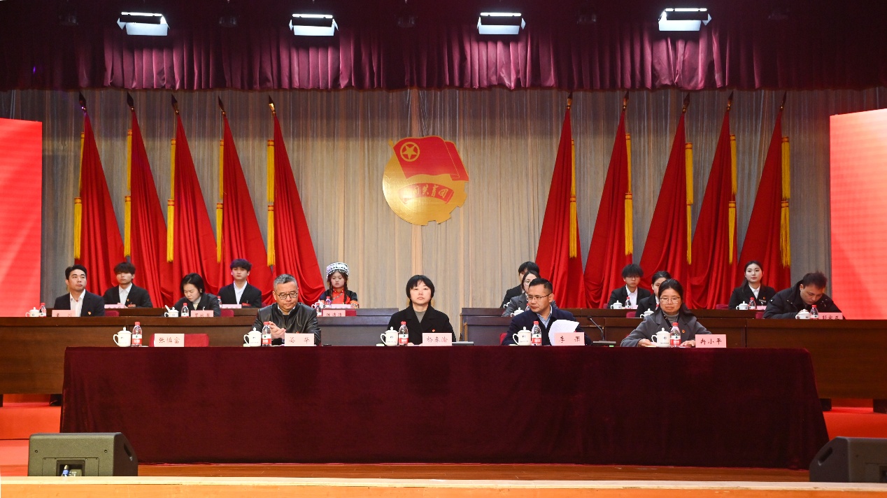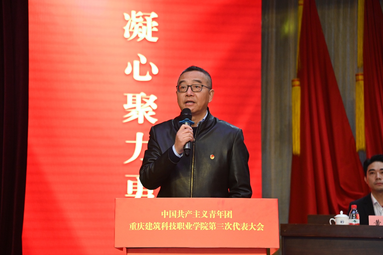 校长助理、工会主席晏华致辞,指出共青团和工会作为党领导的群团组织,在团结和引领群众、服务学校发展中肩负重要职责。重庆财经学院团委书记夏文瑞向大会的顺利召开表示热烈祝贺。沙坪坝区团委副书记李力则充分肯定了学校共青团近年来取得的突出成绩,并表达了对未来加强校地合作、共促共青团事业发展的美好期望。共青团重庆市委副书记杨春渝发表讲话,她充分肯定了学校共青团近年来的突出成效,并提出四点期望:一是切实加强青年师生的政治引领,深入推进用习近平新时代中国特色社会主义思想凝心铸魂,强化团组织与思政课的有机融合,教育青年坚定信念;二是广泛动员青年服务国家和区域发展战略,实施“青年实干家建设新重庆计划”,组织青年积极投身社会实践与公益服务;三是更好地联系和服务青年,通过“我为青年办实事”等活动解决师生实际问题,增强获得感与幸福感;四是对标全面从严治党推进从严治团,推动“红岩先锋”变革型团组织建设,进一步规范团组织管理和团员发展。杨春渝副书记的讲话为学校共青团工作提供了方向指引,进一步激发了青年团员的奋斗热情。开幕式最后,校党委副书记、副校长李果同志发表讲话。他提出,学校正处在全面推进中国一流职业大学奋斗目标建设的关键节点,全校各级团组织一定要高举习近平新时代中国特色社会主义思想伟大旗帜,凝心聚力、奋发进取,引领广大青年坚定理想信念,做自觉自信的建院青年,讲话表达了对青年团员的殷切期望与鼓励。