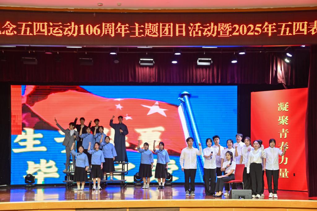 校长张进在讲话中回顾了五四运动的伟大历史意义,指出“五四”精神在新时代依然熠熠生辉,当代青年应顺应时代潮流,把个人成长与国家发展紧密相连。他对全校青年提出三点希望:一是铭记历史,厚植爱国主义情怀,以实际行动维护国家尊严,为强国建设添砖加瓦;二是立足当下,勇挑重担,在学风建设、产教融合、社区治理等方面发挥先锋模范作用,助力学校发展;三是着眼未来,坚定理想信念,做到知行合一,在时代浪潮中找准自身定位,不断提升自我。
