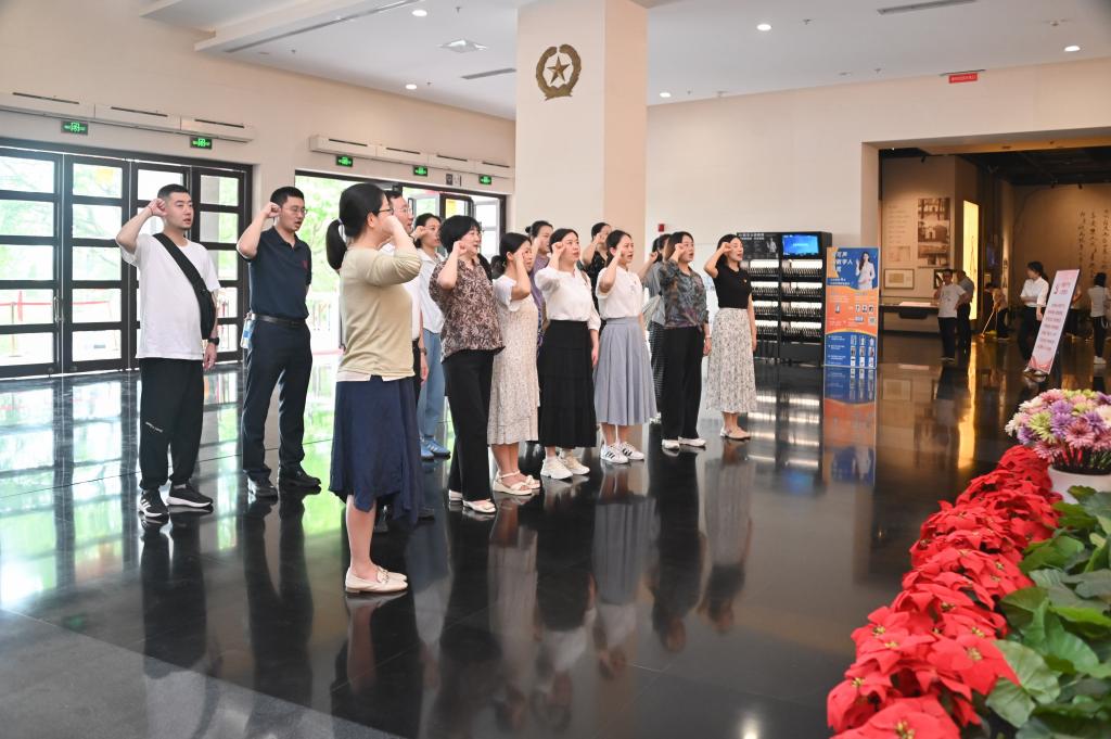 聂荣臻元帅陈列馆位于重庆市江津城区,由江泽民同志亲笔题写馆名。馆内展出文物、图片共3000余件(张),通过雕塑、油画等艺术形式和声光电技术,生动再现了聂荣臻元帅光辉的一生。党员们在讲解员的带领下,依次参观了各个展厅。从聂荣臻元帅立志报国的青年时代,到其作为开国元勋在革命岁月中的卓越贡献;从担任科技主帅为新中国国防科技事业披荆斩棘,到新的长征路上始终坚守的坚定信念,每一段历史、每一件展品都深深打动着在场的每一位党员。在聂荣臻元帅雕像前,全体党员整齐列队,重温入党誓词。“我志愿加入中国共产党……”铿锵有力的誓言在陈列馆内回荡,表达着党员们对党的无限忠诚和为共产主义事业奋斗终身的坚定决心,也彰显了大家传承革命先辈精神、不忘初心、牢记使命的信念与担当。