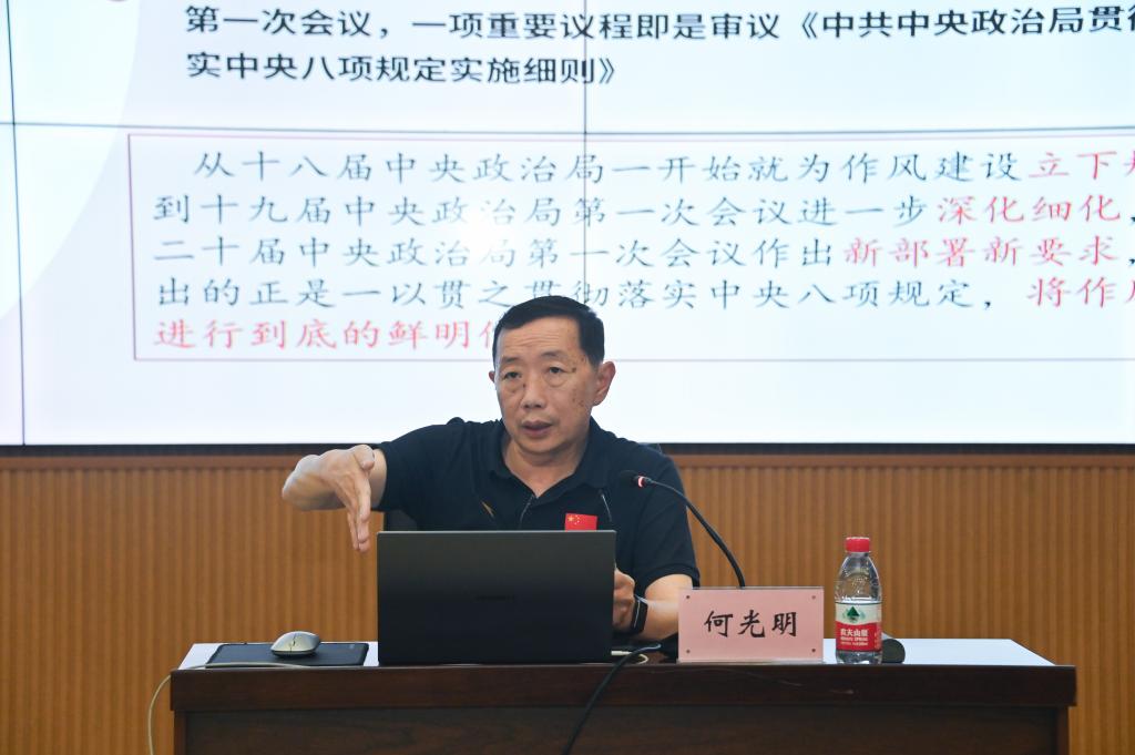 为推动深入贯彻中央八项规定精神学习教育走深走实,按照学校党委工作安排,6月26日下午,校党委书记何光明在大数据中心为师生党员讲授专题党课。副校长王靖,机关党总支、行政部门全体人员及学生党员代表参会。